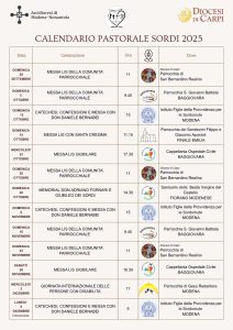 In allegato il calendario per la diocesi di Modena-Nonantola e di Carpi delle celebrazioni, degli incontri e degli eventi; a seguire una foto di gruppo con don Daniele Bernabei presso il Santuario di Fiorano